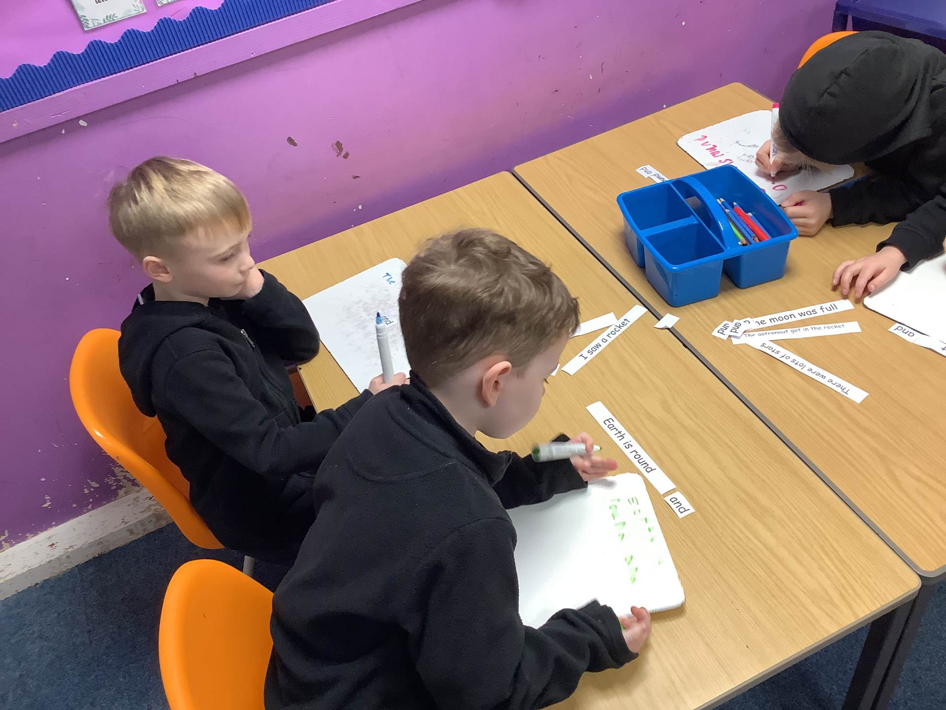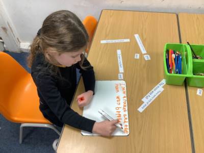 This week (WC. 12.01) Conker class were learning how to combine two clauses using the conjunction 'and'. Some pairs had to join together the two clauses that best fit and then re-write the sentence in full using 'and', while others had just one clause and had to continue the sentence to include 'and'.
