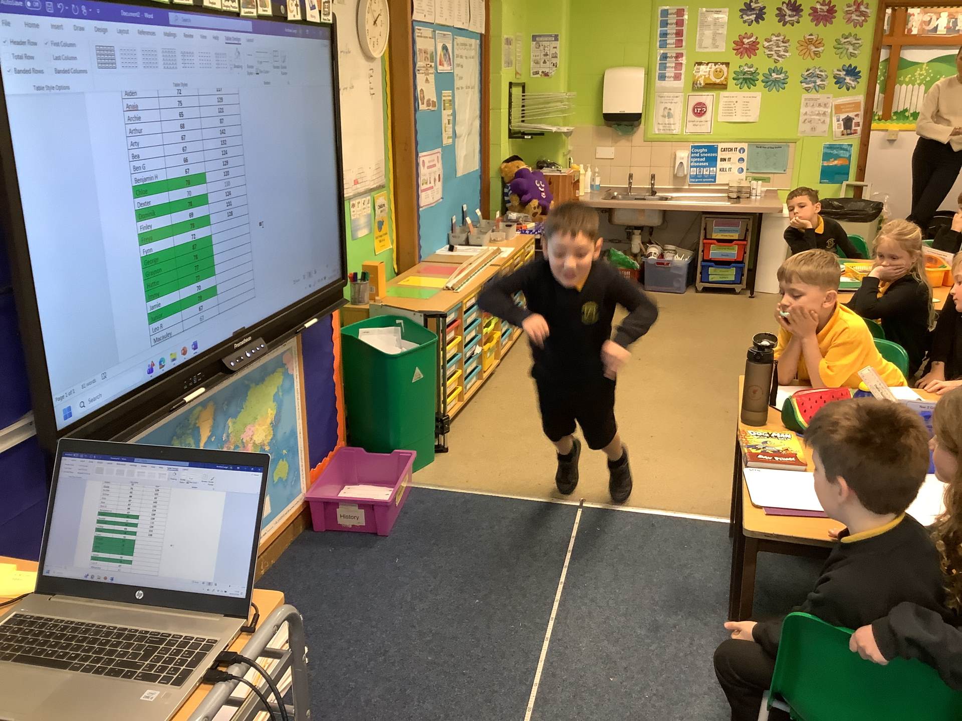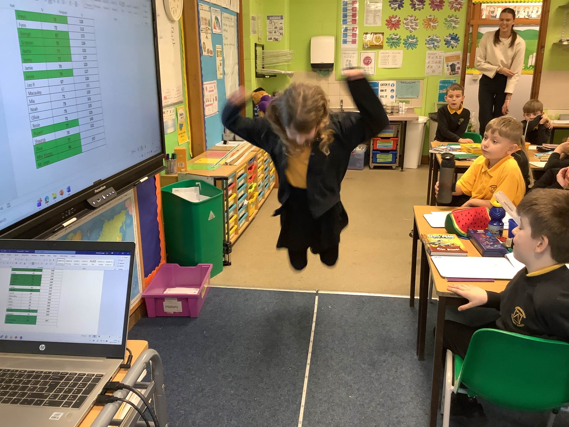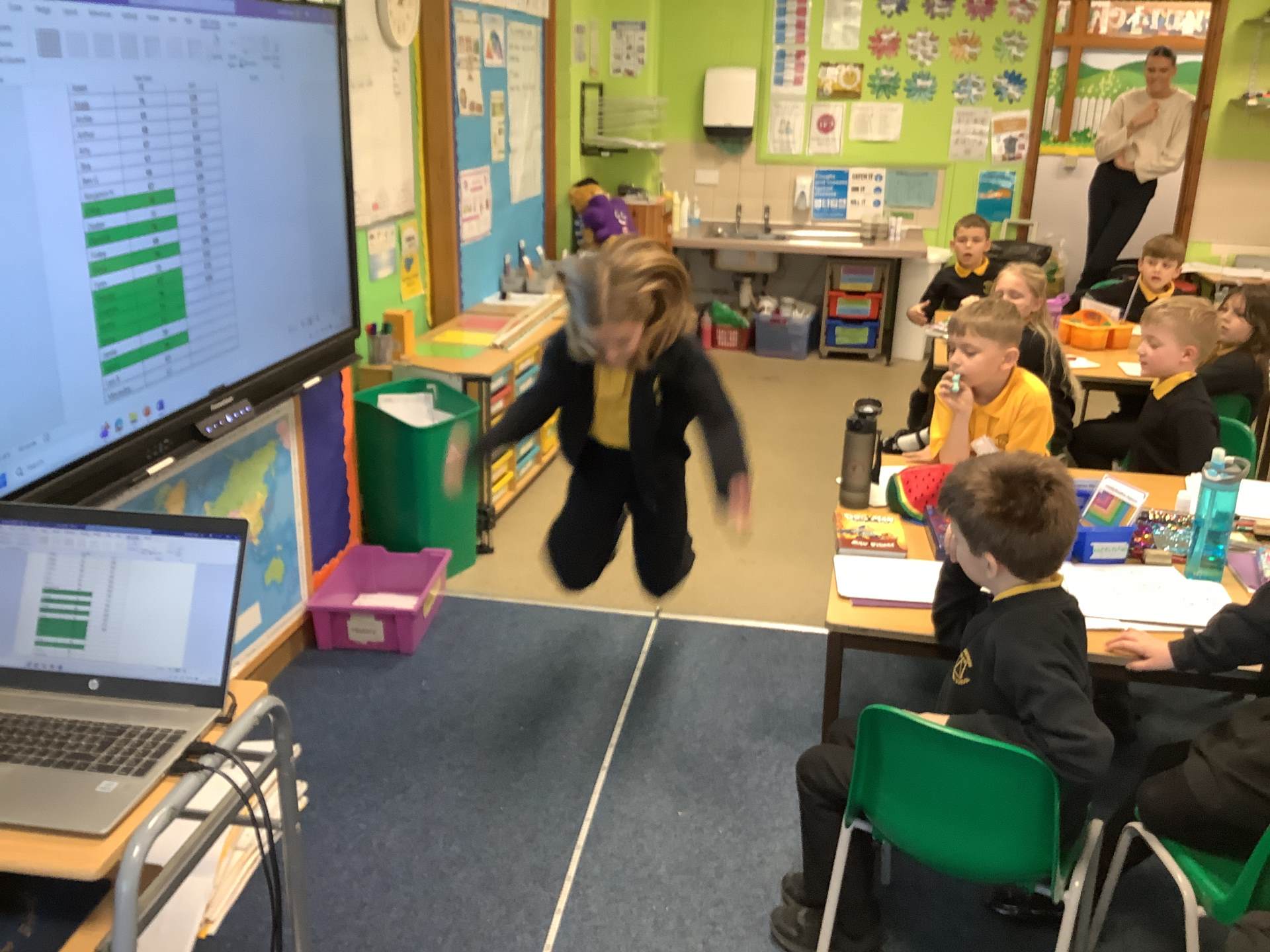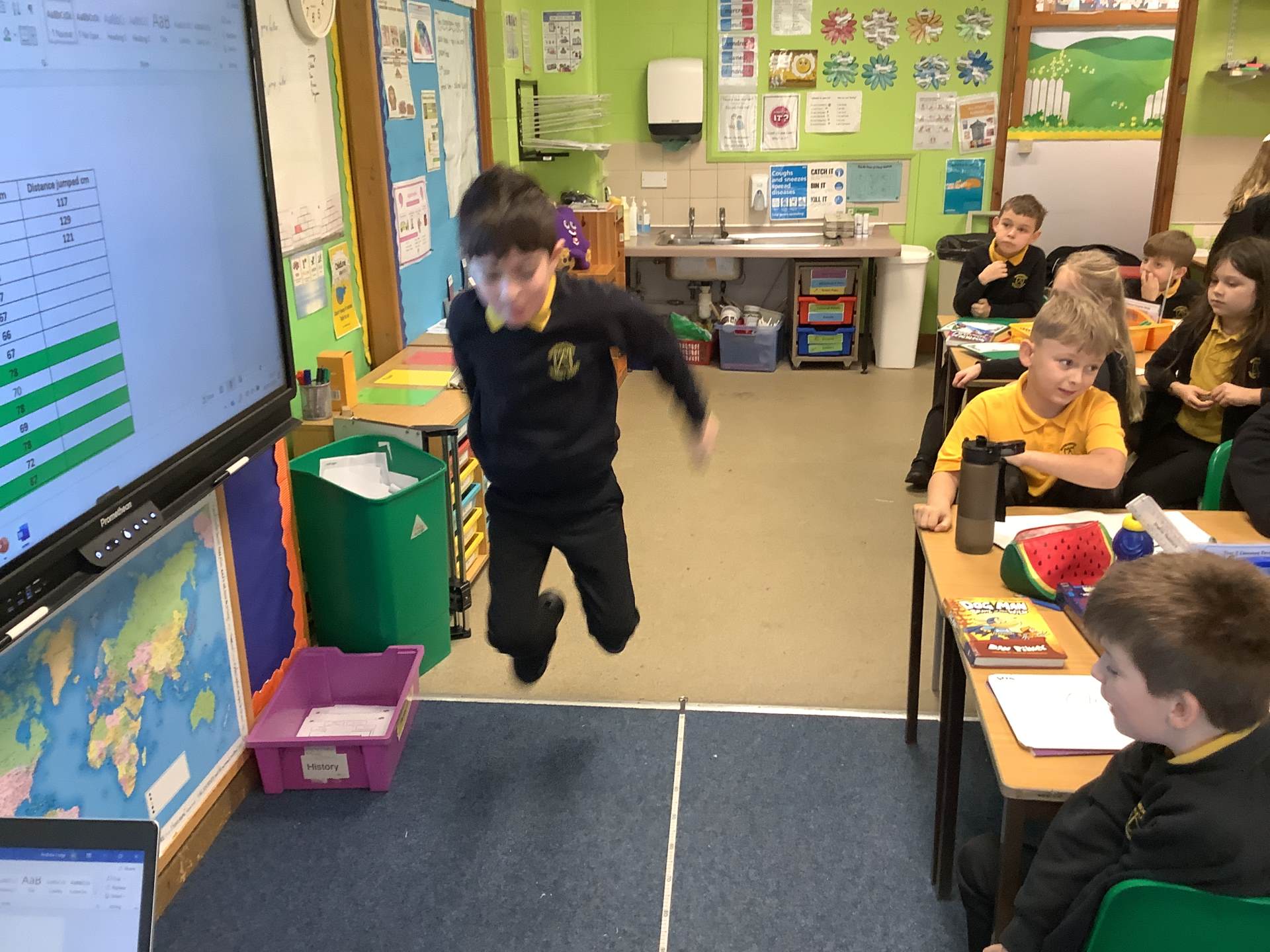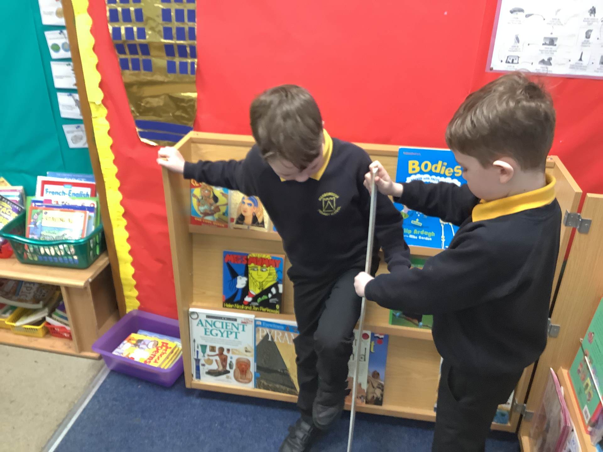 The children have been learning about The Pyramids of Giza, in particular, Khufu's Pyramid. We used software to explore how and why they were constructed and how they have changed due to time and erosion. In Science, the children have been learning about skeletons and the bones in the human body. They were then investigating whether your leg length impacted on how far you could jump.