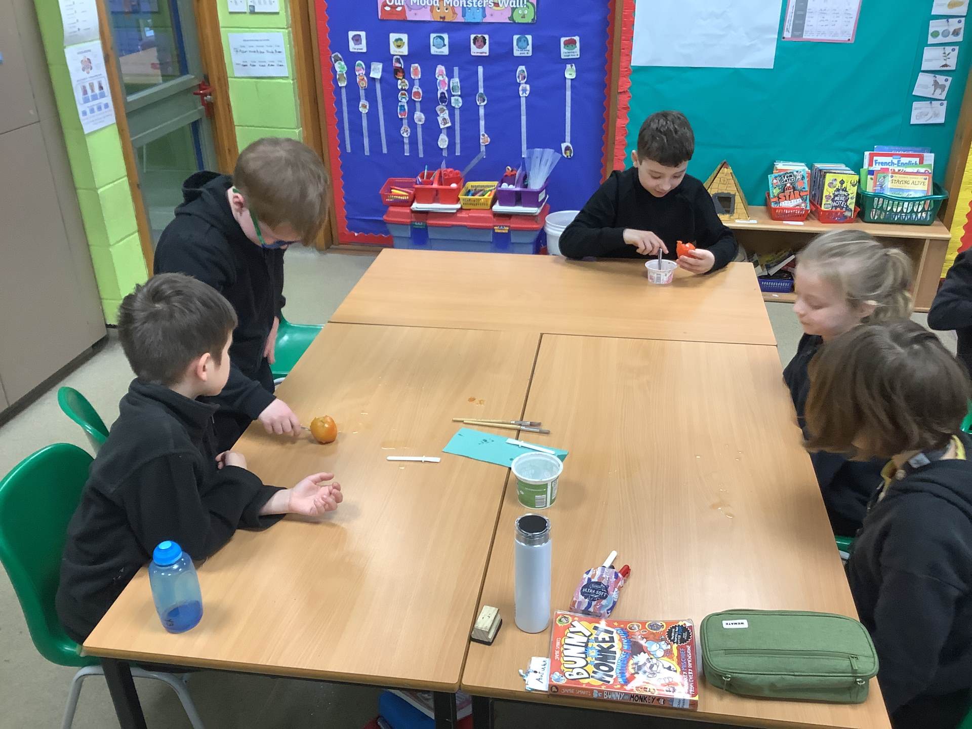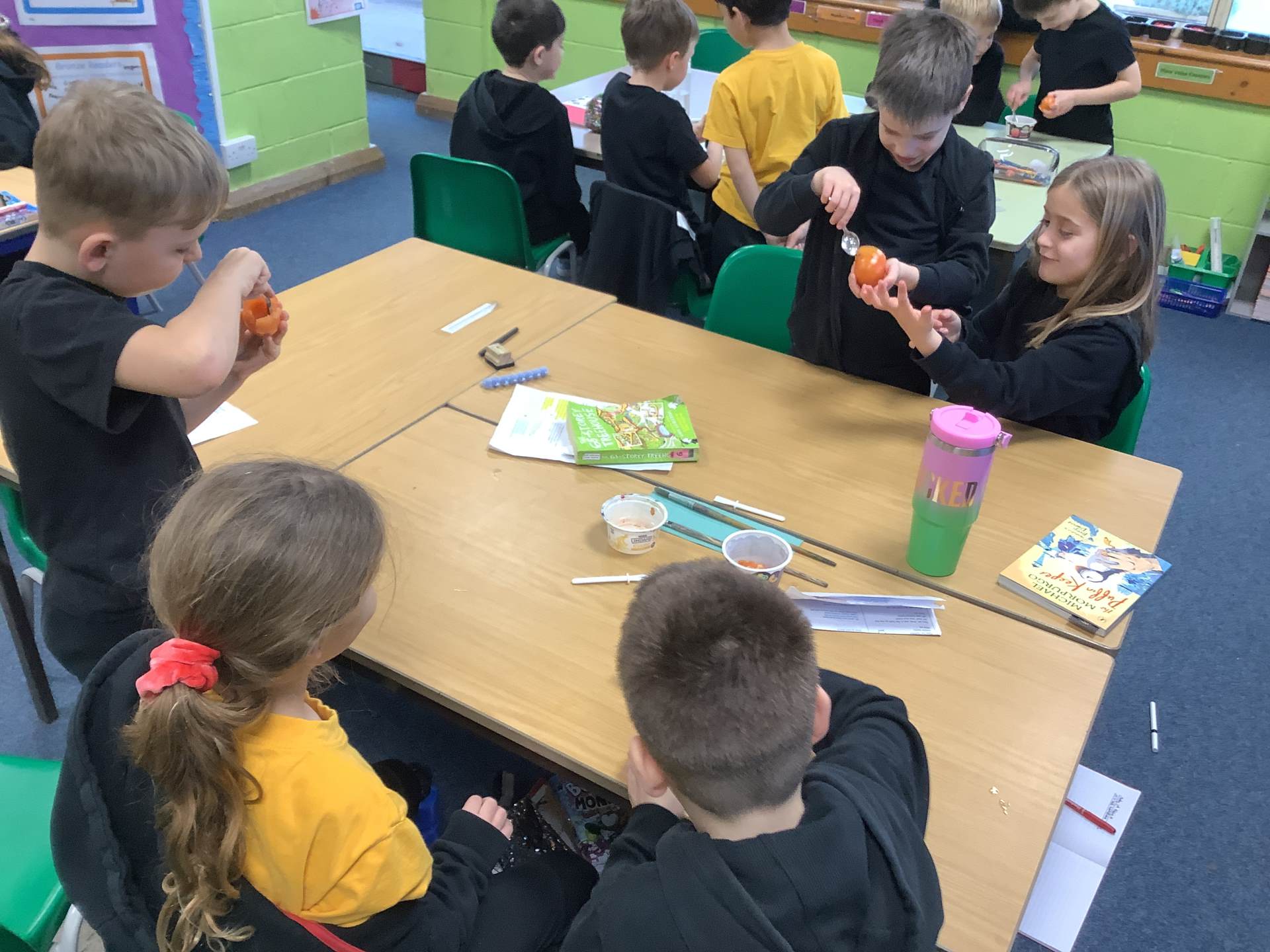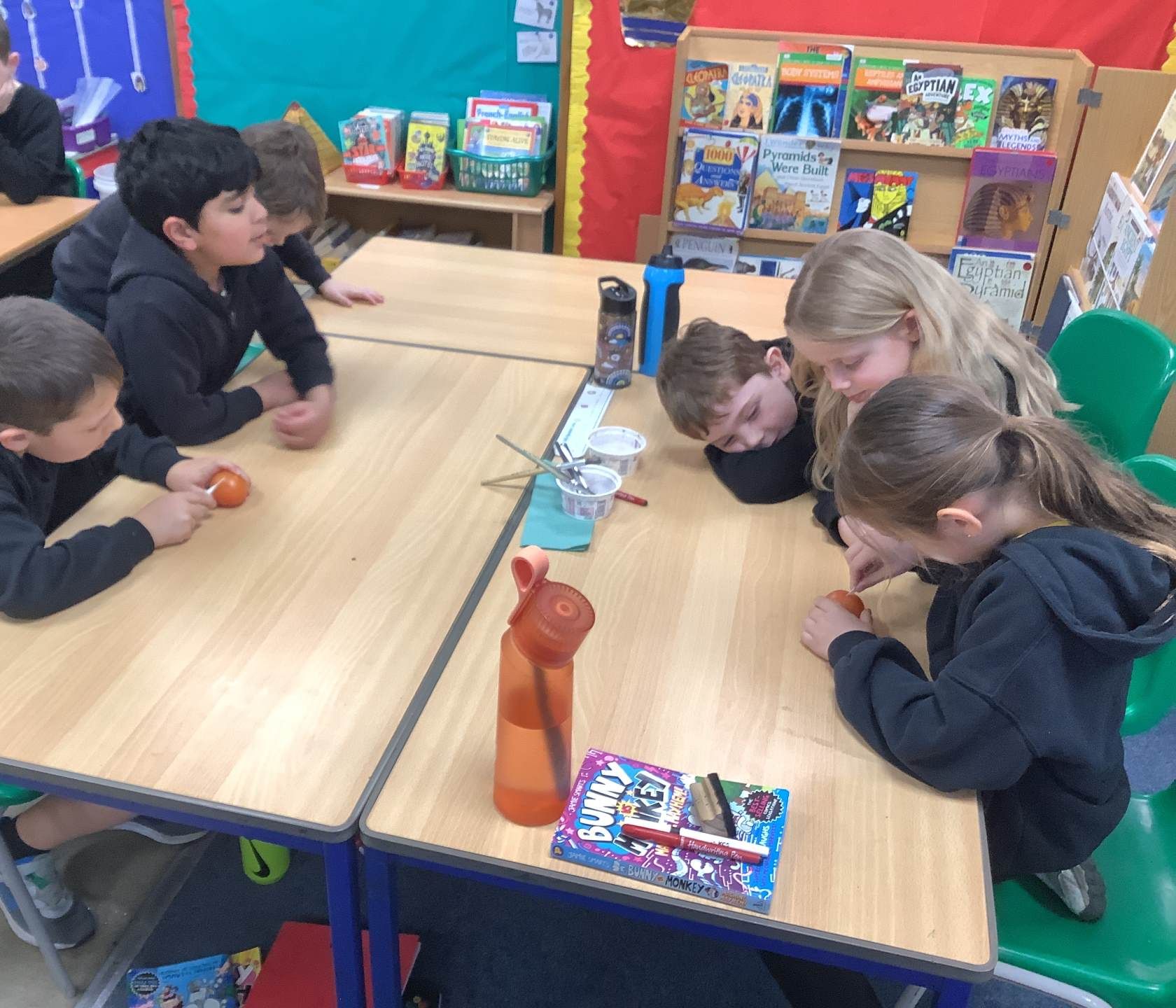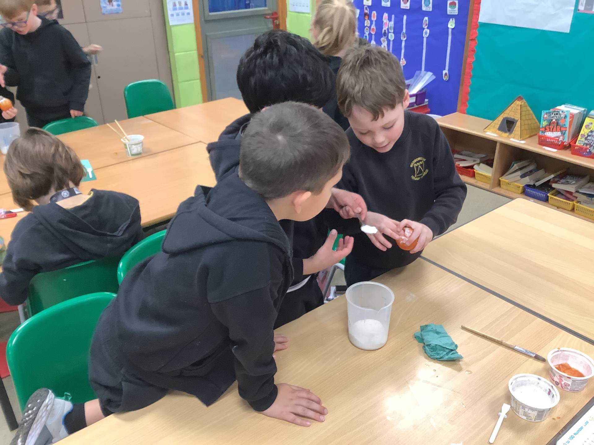 In Art, the children have been learning and creating art which has been inspired by Jackson Pollock. The children have created a piece of digital art following Jackson Pollock's style of drip painting. In English, the children have been creating sentences which include subordinate clauses. To support the class, the children mummified a tomato and then wrote sentences based on the steps they took.