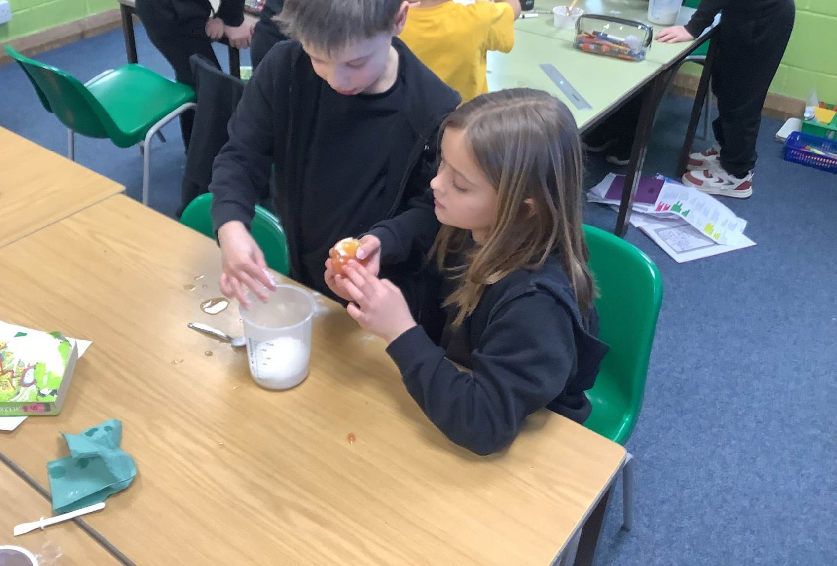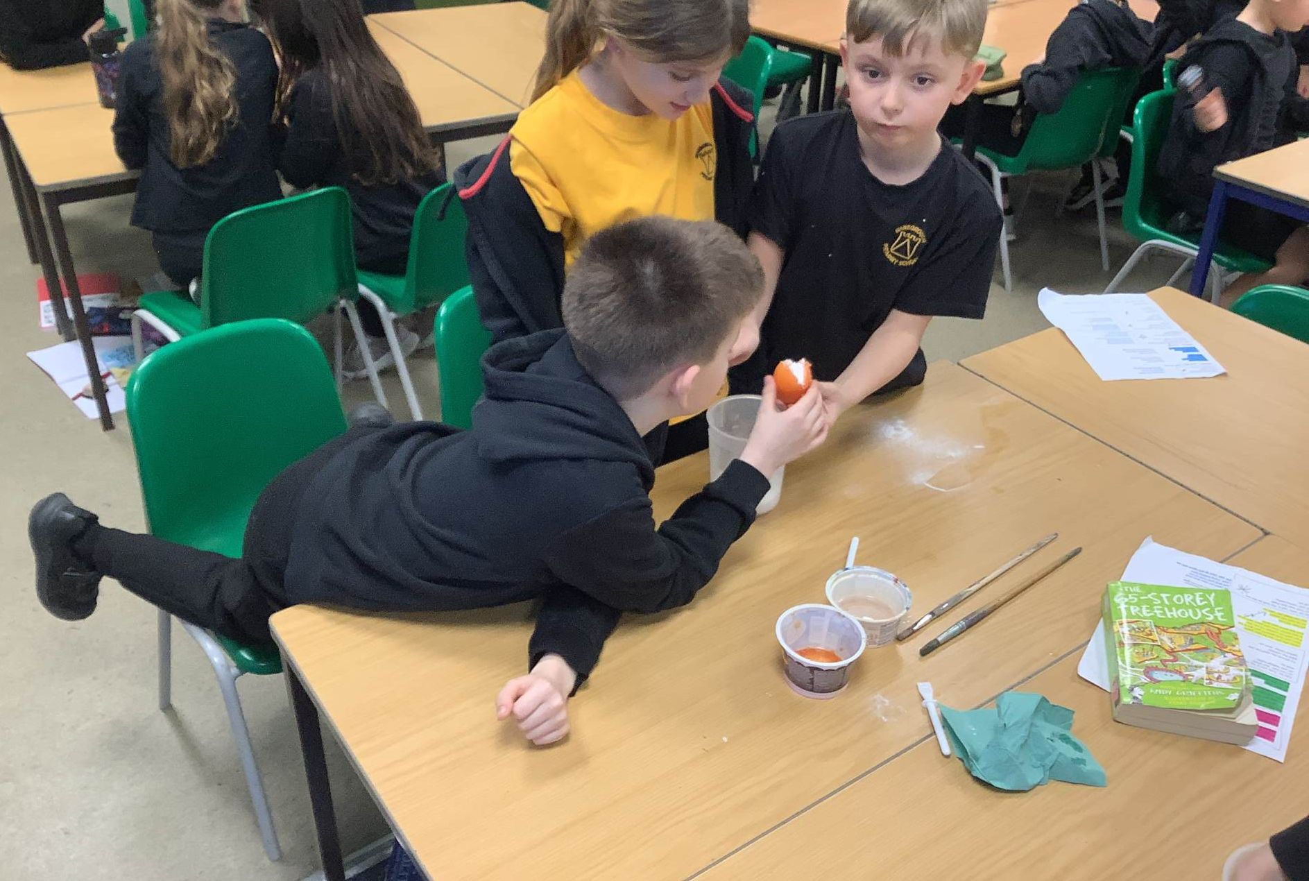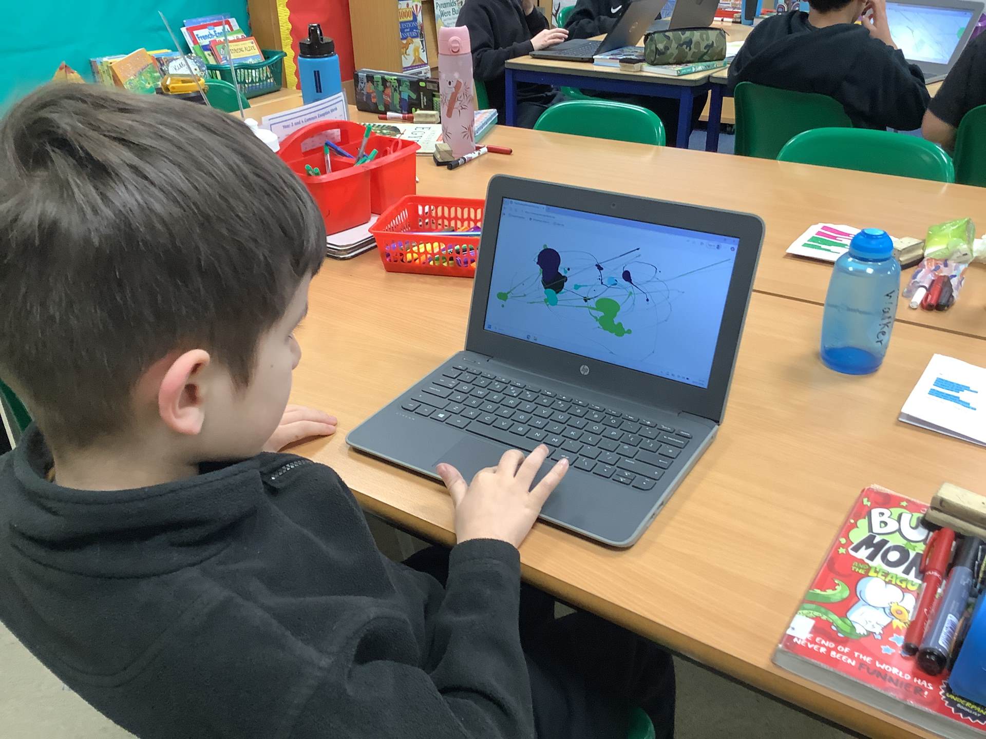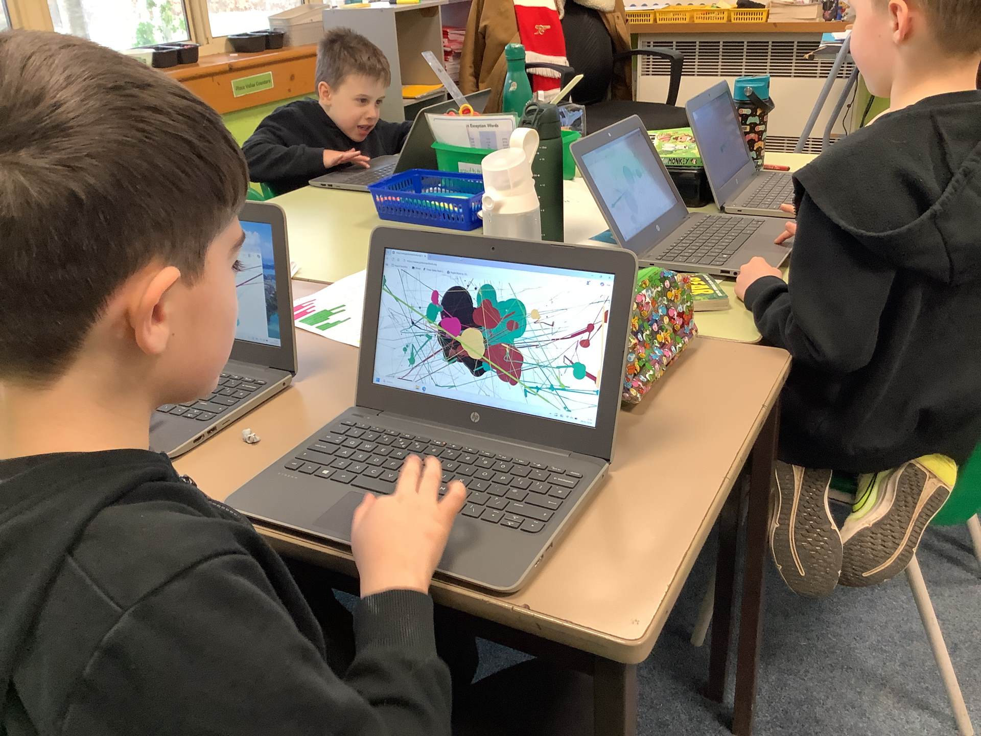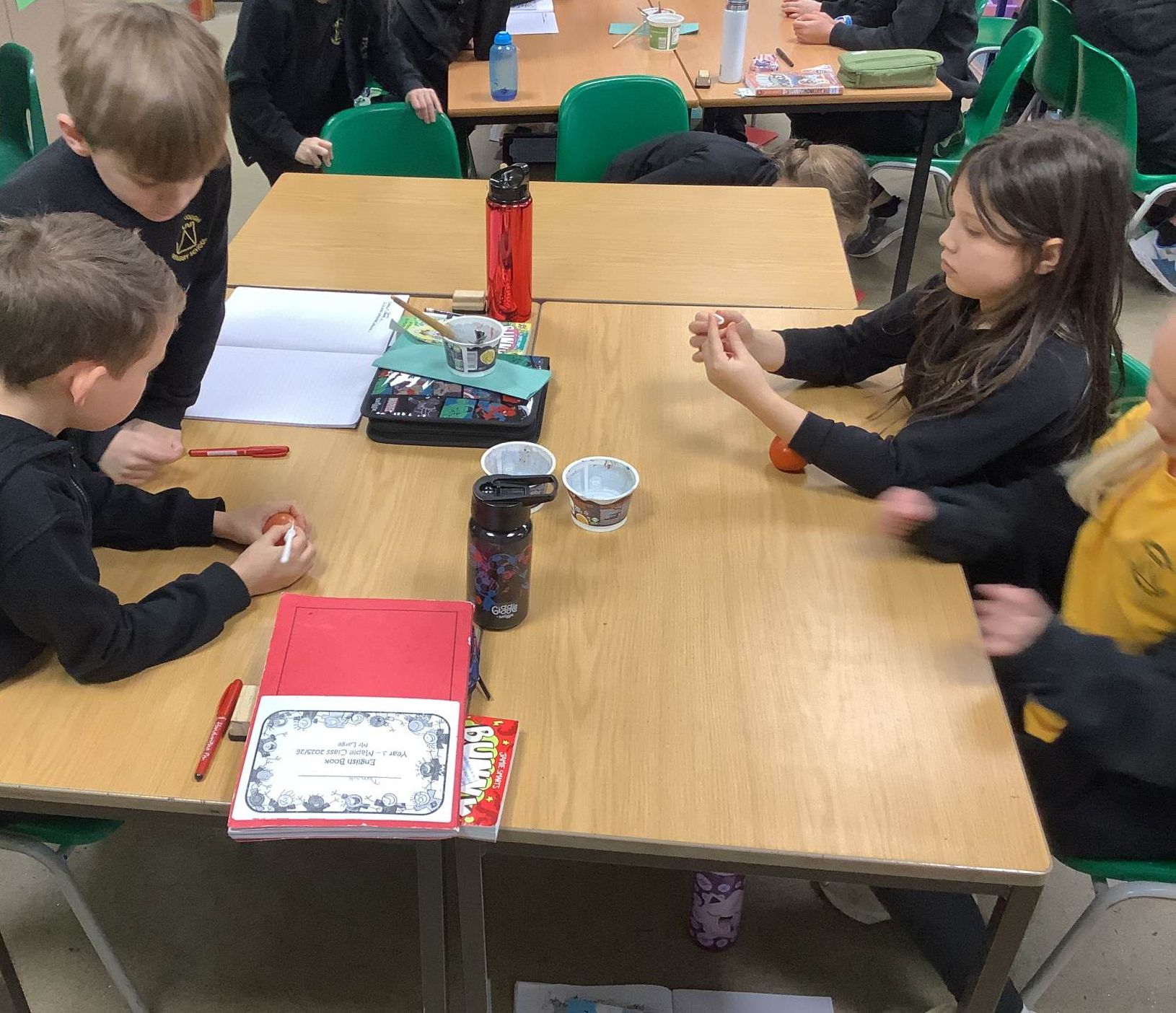 In Art, the children have been learning and creating art which has been inspired by Jackson Pollock. The children have created a piece of digital art following Jackson Pollock's style of drip painting. In English, the children have been creating sentences which include subordinate clauses. To support the class, the children mummified a tomato and then wrote sentences based on the steps they took.