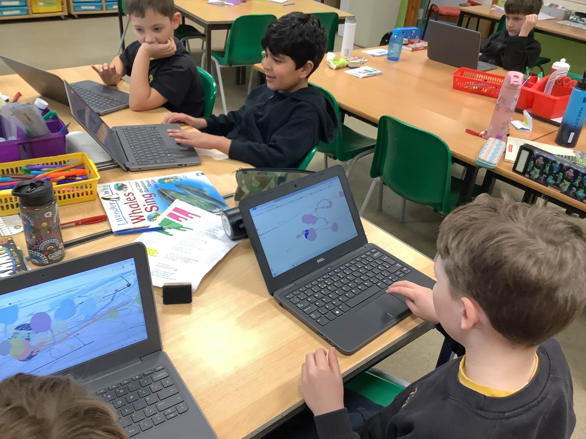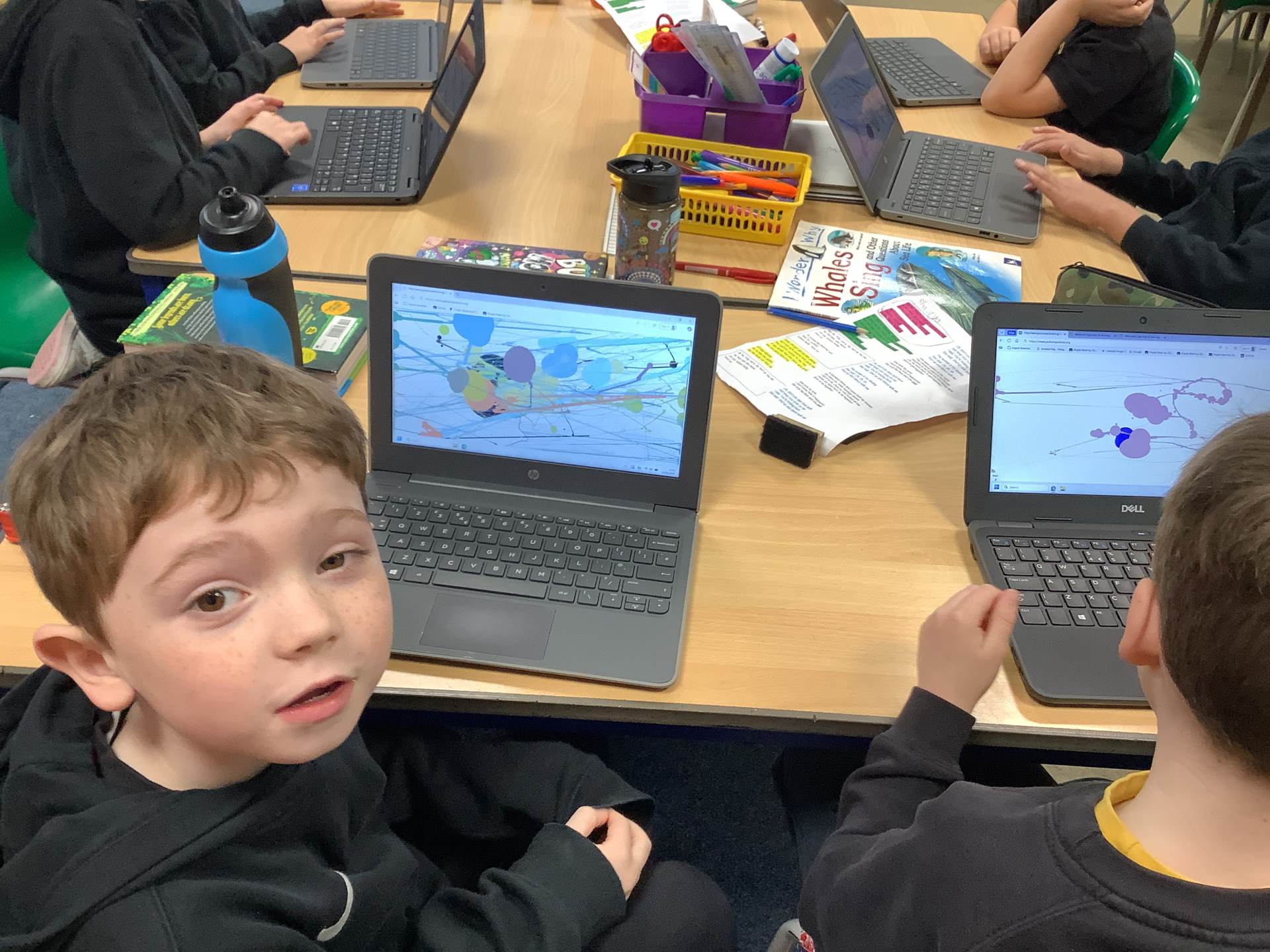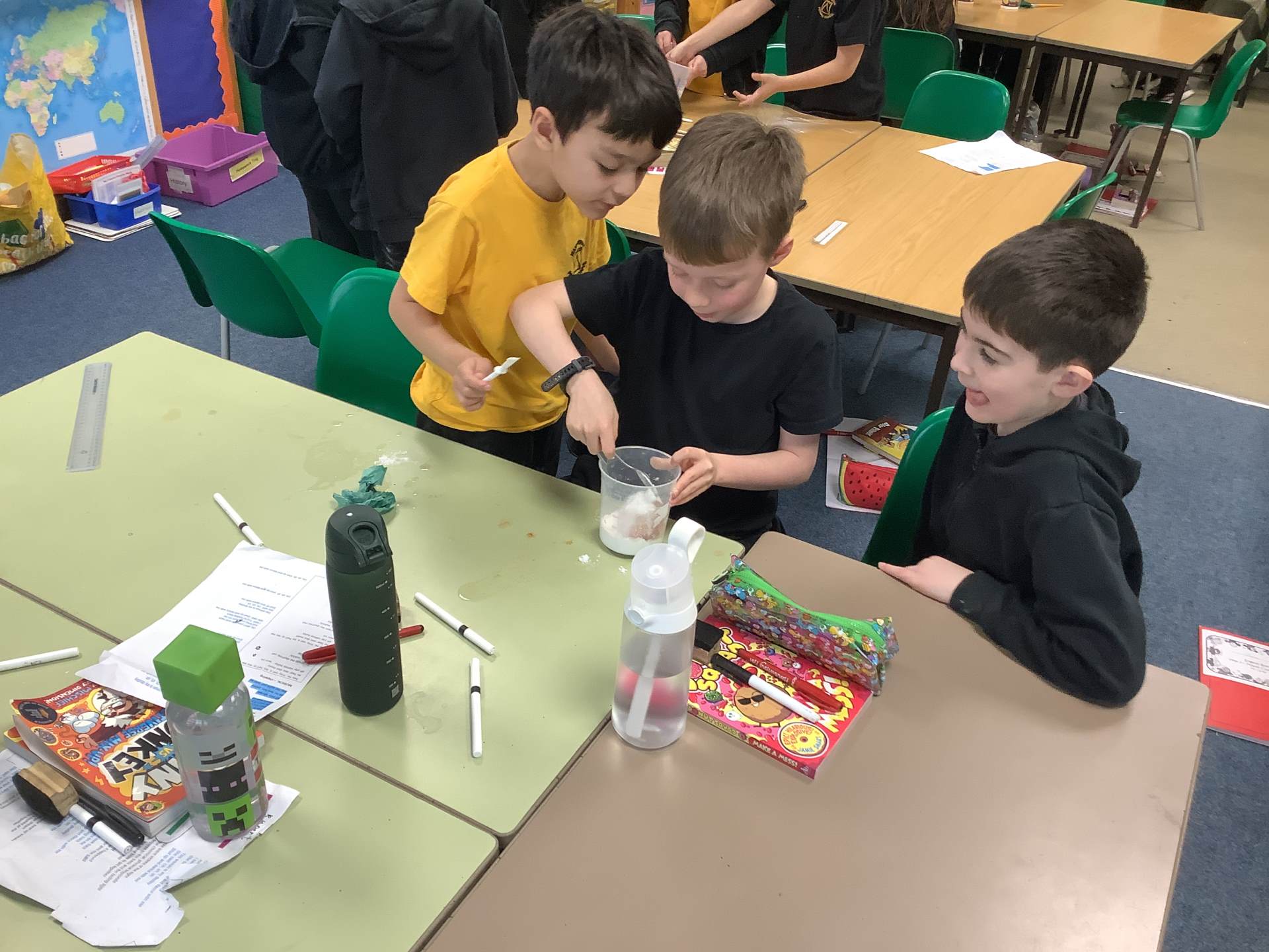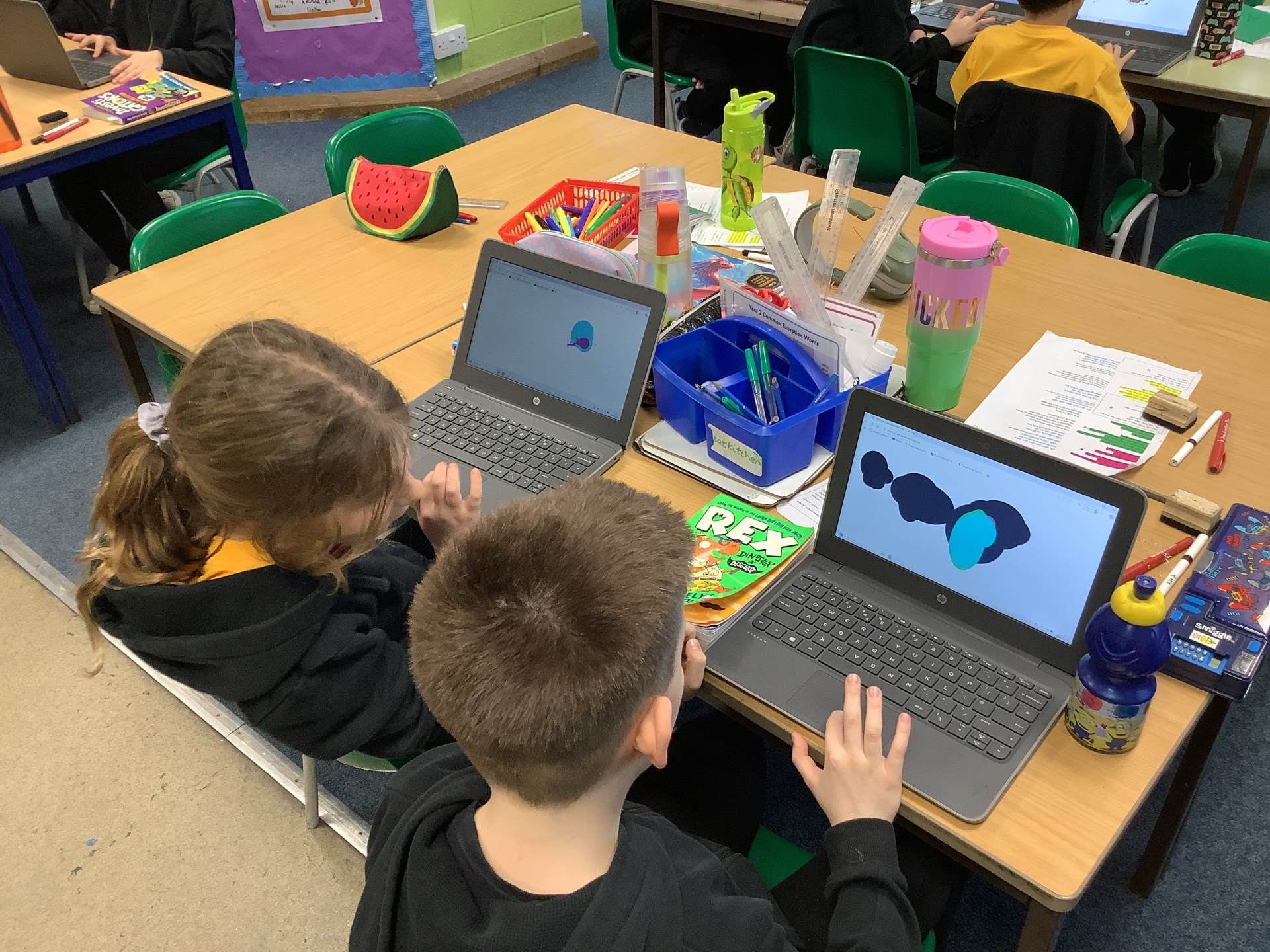 In Art, the children have been learning and creating art which has been inspired by Jackson Pollock. The children have created a piece of digital art following Jackson Pollock's style of drip painting. In English, the children have been creating sentences which include subordinate clauses. To support the class, the children mummified a tomato and then wrote sentences based on the steps they took.